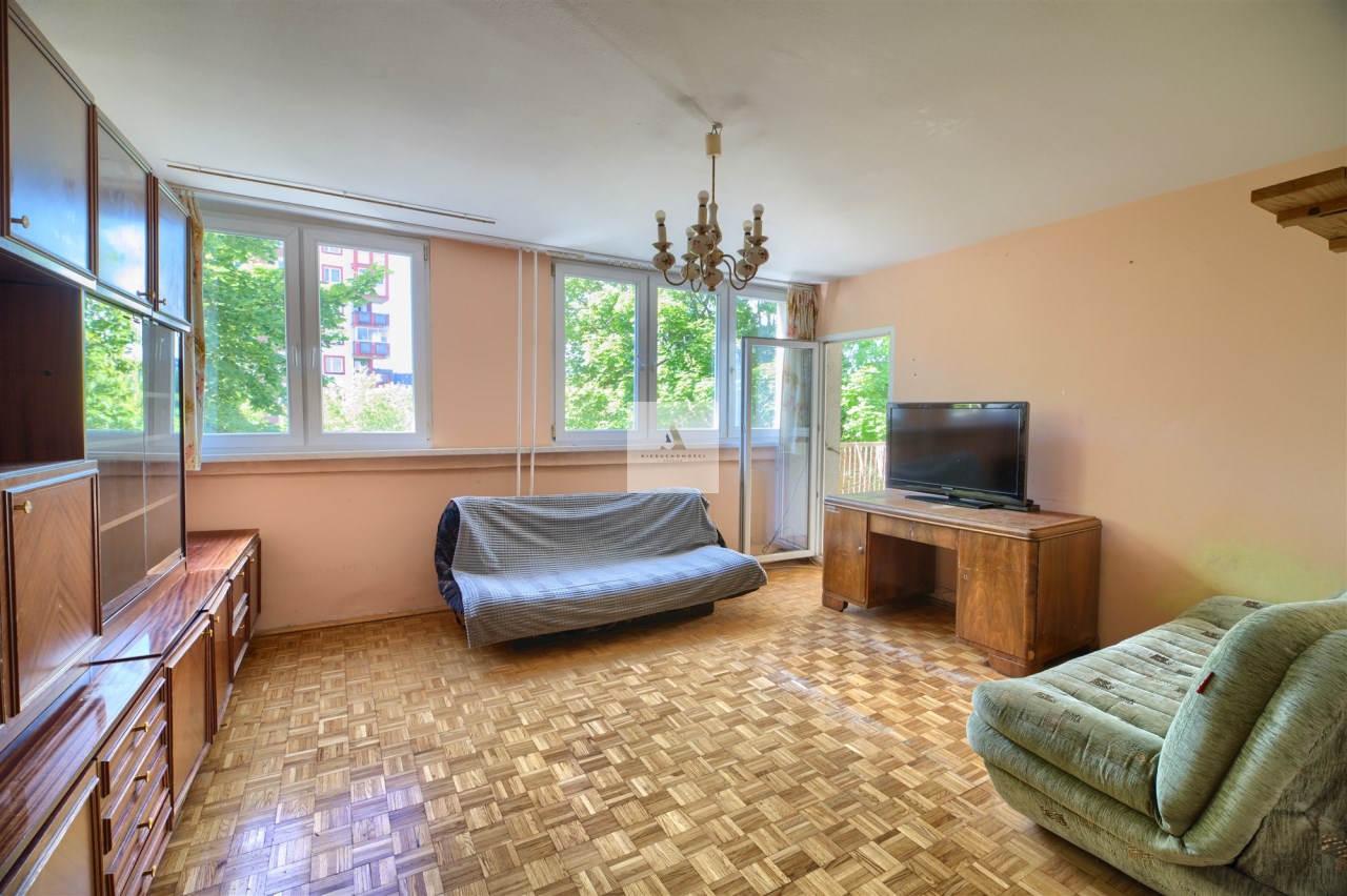 Dwustronne mieszkanie znajduje się na trzecim piętrze w czteropiętrowym bloku mieszkalnym z lat 70tych.